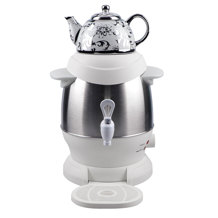 Представляем НАБОР ЧАЙНОЙ ЗАВАРКИ «САМОВАР», незаменимый аксессуар для всех любителей чая! В этот красиво оформленный набор входит электрический чайник из высокотемпературной нержавеющей стали объемом 4,0 л с нижним слоем, который идеально подходит для быстрого и эффективного кипячения воды. На верхнем уровне находится фарфоровый чайник объемом 1,0 л, который идеально подходит для заваривания любимого листового чая.